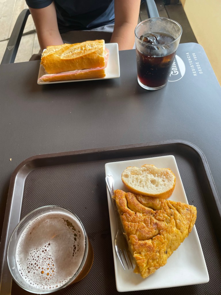 Dinner at a dive bar for pinchos (tapas). Pretty good. Snacking on a chocolate/banana Clif bar in my room for dessert.