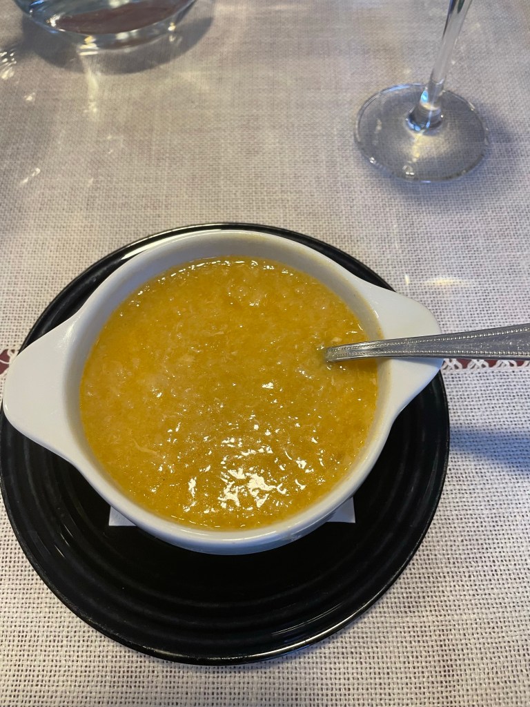 I know it doesn’t look like much, but Castilian soup (also known as garlic soup) was amazing. Ingredients are bread, olive oil, paprika, chicken stock and garlic. Followed by chicken cooked in beer – very tender and delicious. Thoroughly enjoyed dinner.