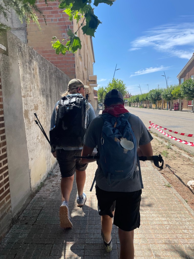 Got off a little earlier with great hope of avoiding some of the extreme heat. Leaving Castrojeriz was pretty easy and then…the dreaded ascent. From a distance it looked deceivingly gradual. The path reality proved quite different. We climbed uphill for nearly two miles. At the summit (at about mile 8) there was a truck with drinks and snacks, no actual food. We’re told the next town is about two more miles.