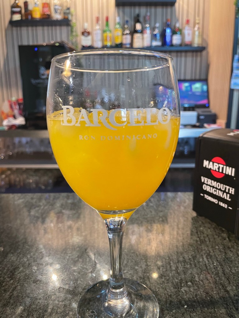 First things first – vodka and fresh orange juice. Life is good.