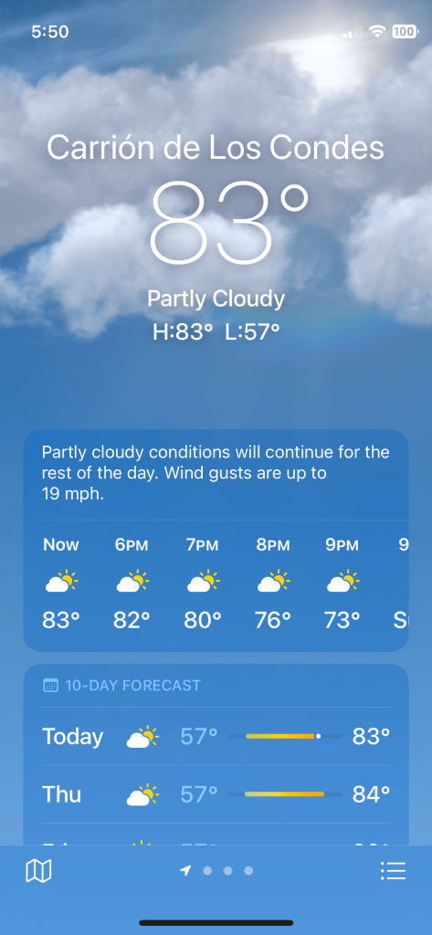 Depart Fromista at 8:10. Arrived Carrion de Los Condes at 1:55. 11.9 miles.