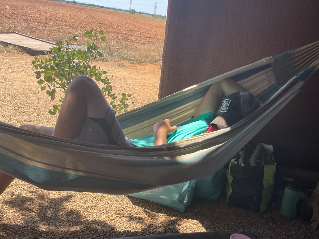 This was a little shack with the owner providing lots of fresh fruit, juice, cold water and crackers. Contributions welcome. He was a hippie kind of Spaniard raised in France and returned home to live the peaceful life. He said he had a special ceremony to bury his past. Off we went, got a little too weird. But Caleb enjoyed the hammock.