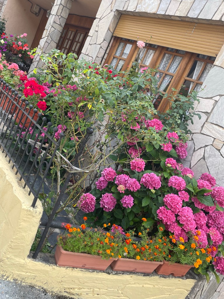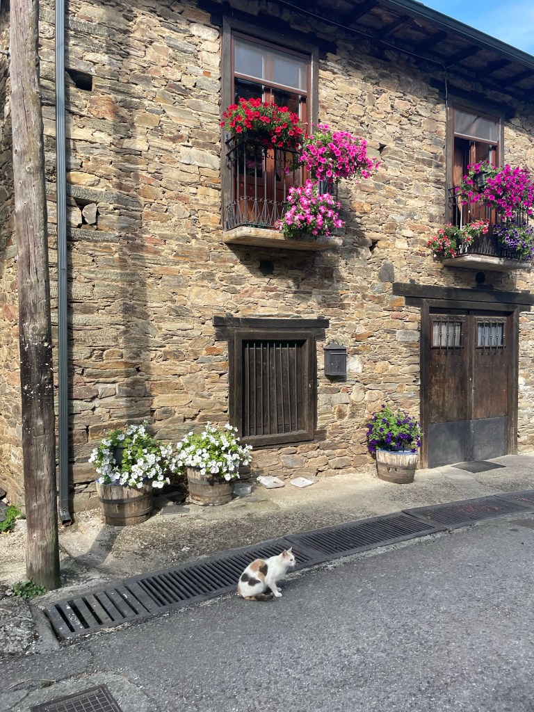 We had some lovely sites when we arrived at villages. The Spanish do love their flowers (and cats).