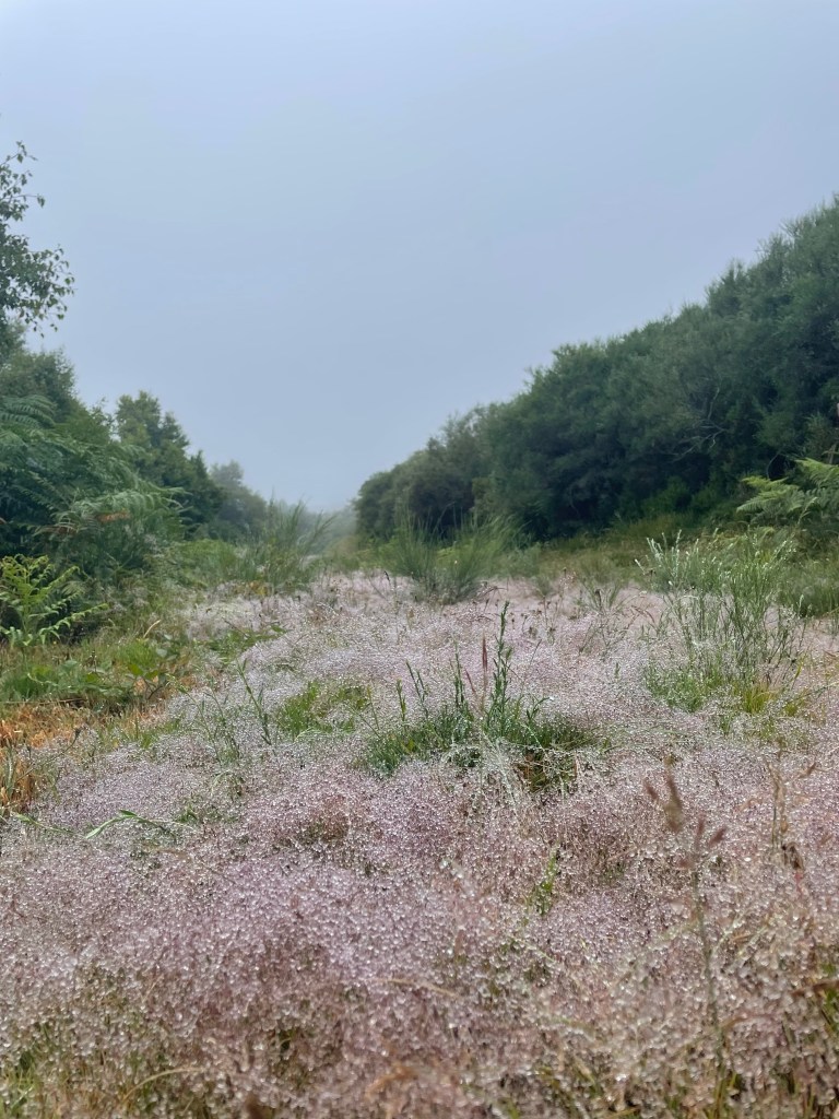 This morning we left in the mist. It was cold and dewy and really different than what we’d experienced so far.