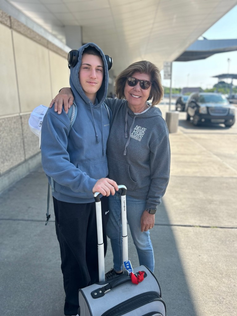 Waiting for our delayed flight in Raleigh, I’ve already had a snack bar and coffee. Caleb is snacking on a wrap, cookies and an energy drink. This is a sign of things to come. 🍔🌮🍕🍪