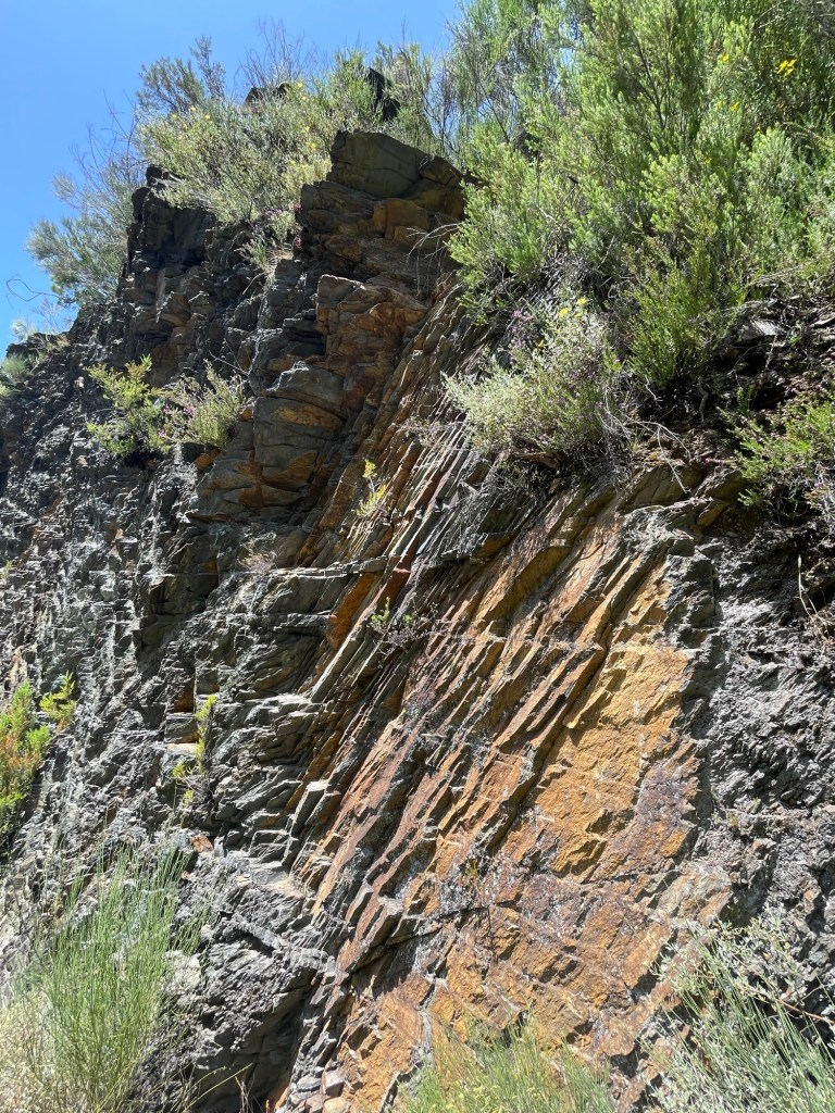 We did take a number of brief rests today. The temperature was mid 80s for most of the day and very little shade to protect us from the heat. We’re both very sunburned despite sunscreen.