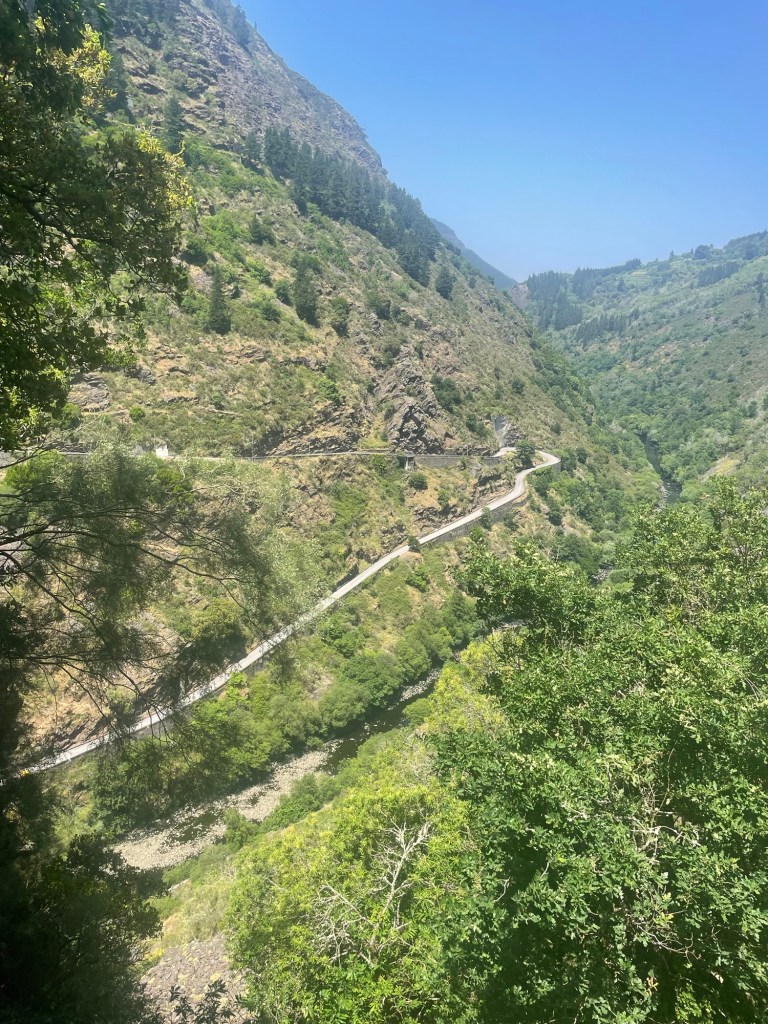 I need to correct a few translation errors on my part – locals term for this route is “broken knees” not legs, as I said yesterday. This, of course makes more sense, as the steep ups and downs take a toll on your knees. Also, when I thought our driver yesterday said we’d see waterfalls, it was actually a dam she was trying to explain. Photos to follow. Spoiler alert – if you suffer from vertigo as I do, you may get dizzy.
