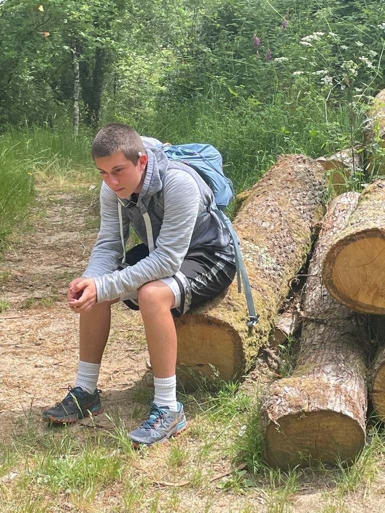 Despite the long miles, we were doing just fine til my left foot cramped and Caleb had sharp pain in his feet. We are getting stronger, but we also are stretching ourselves each day and it’s catching up. So for the last several miles, we stopped quite a bit and had a quick rest til we were ready to move on. That delayed our arrival but was the best solution for us.