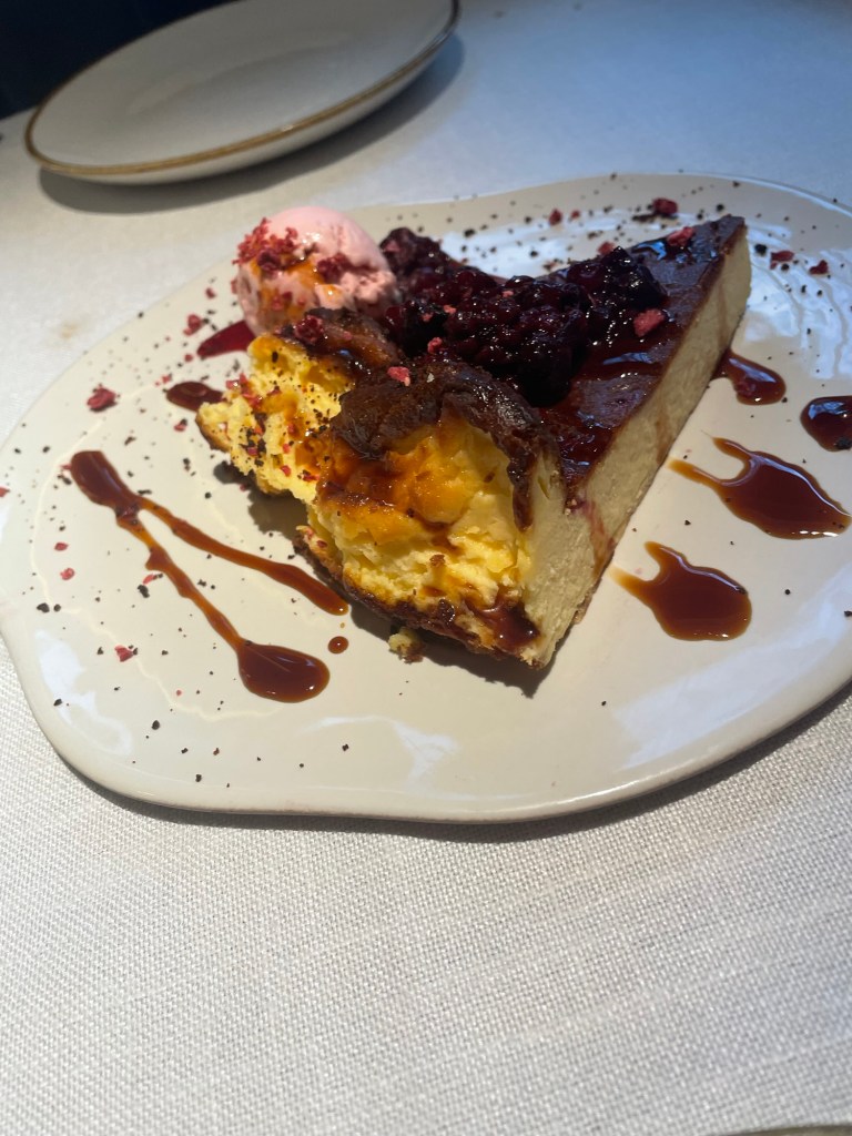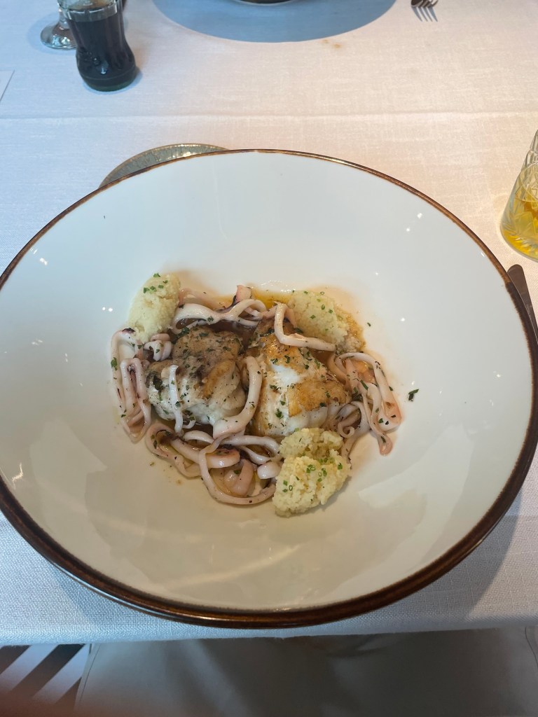We dined on a shared salad, monkfish and squid for Caleb, bluefin tuna for me and shared cheesecake with fresh berries.