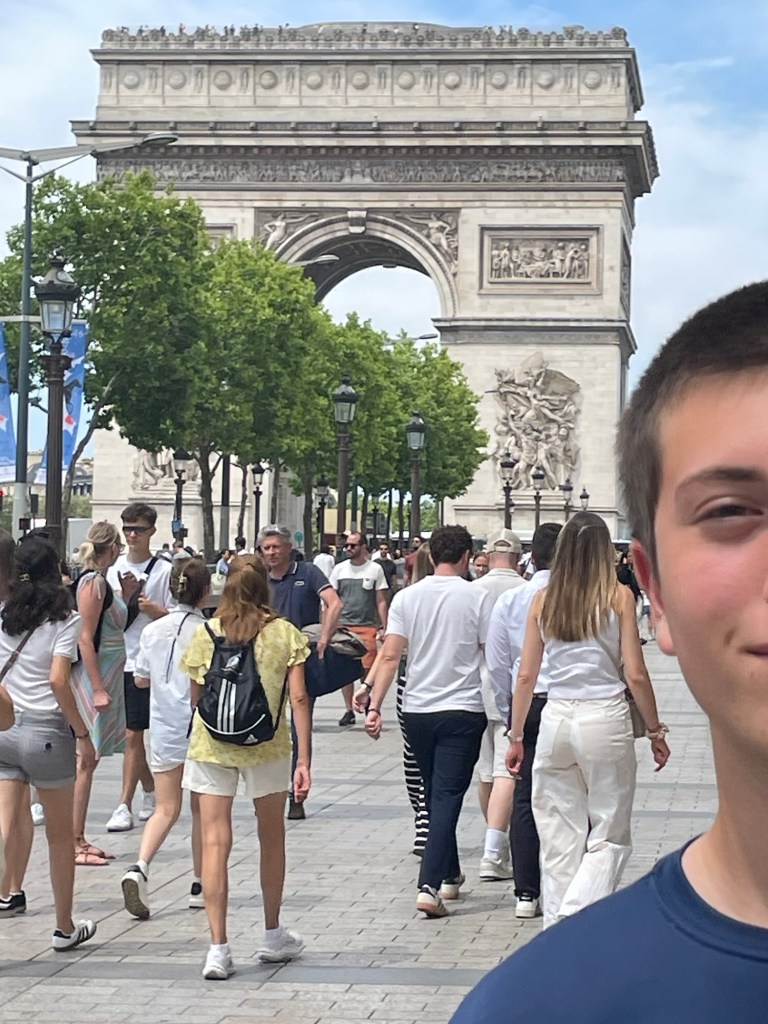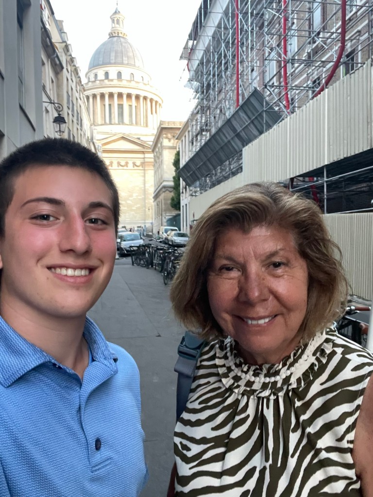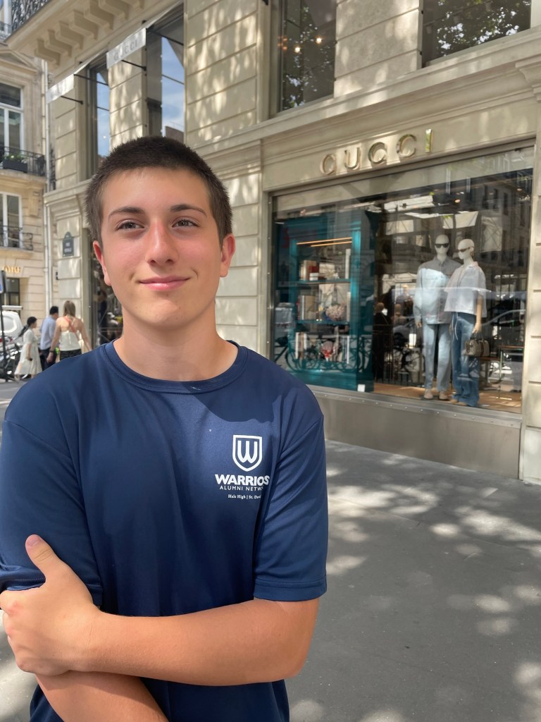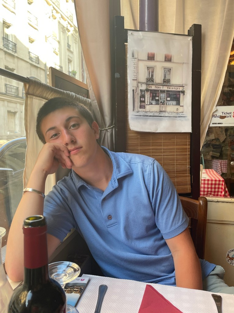 We went on the hunt for Caleb’s designer outfit for our dinner at Le Tren Bleu tomorrow. Great shirt at a designer place I don’t know – Zadig Voltaire. And I got lovely shoes. On to Zara for slacks. The highlight was Gucci for loafers. This kid could not be more happy. I know it’s extreme, but…