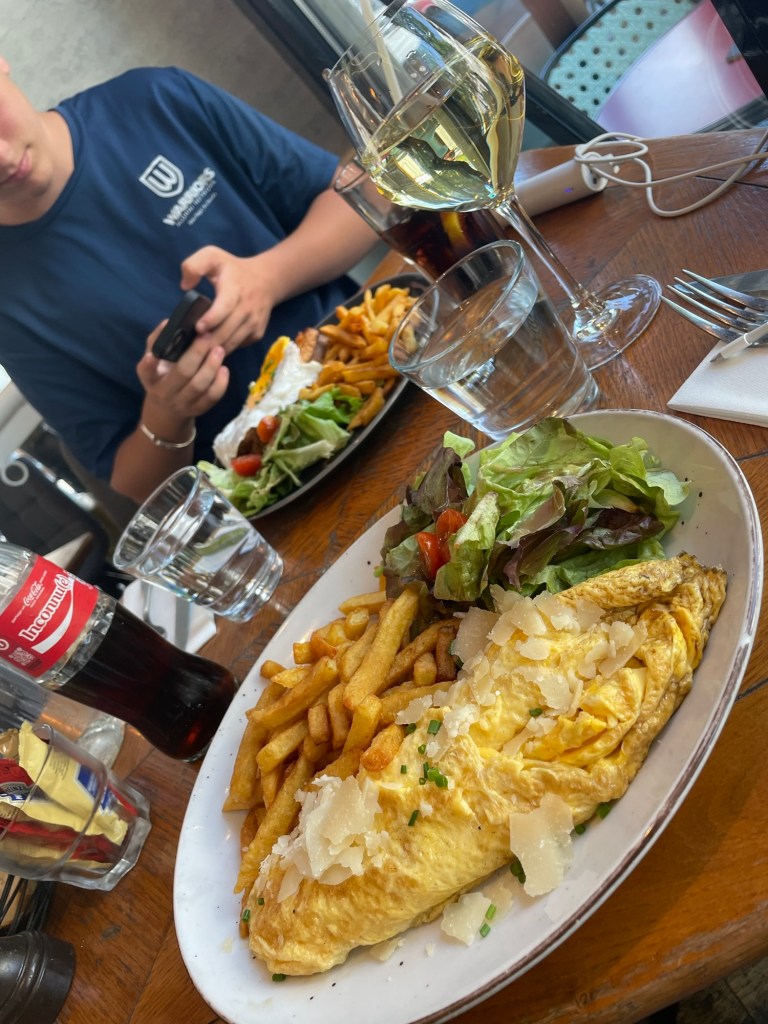 Our lunch was typical – croque madame for Caleb and a cheese omelet for me – no complaints at all .
