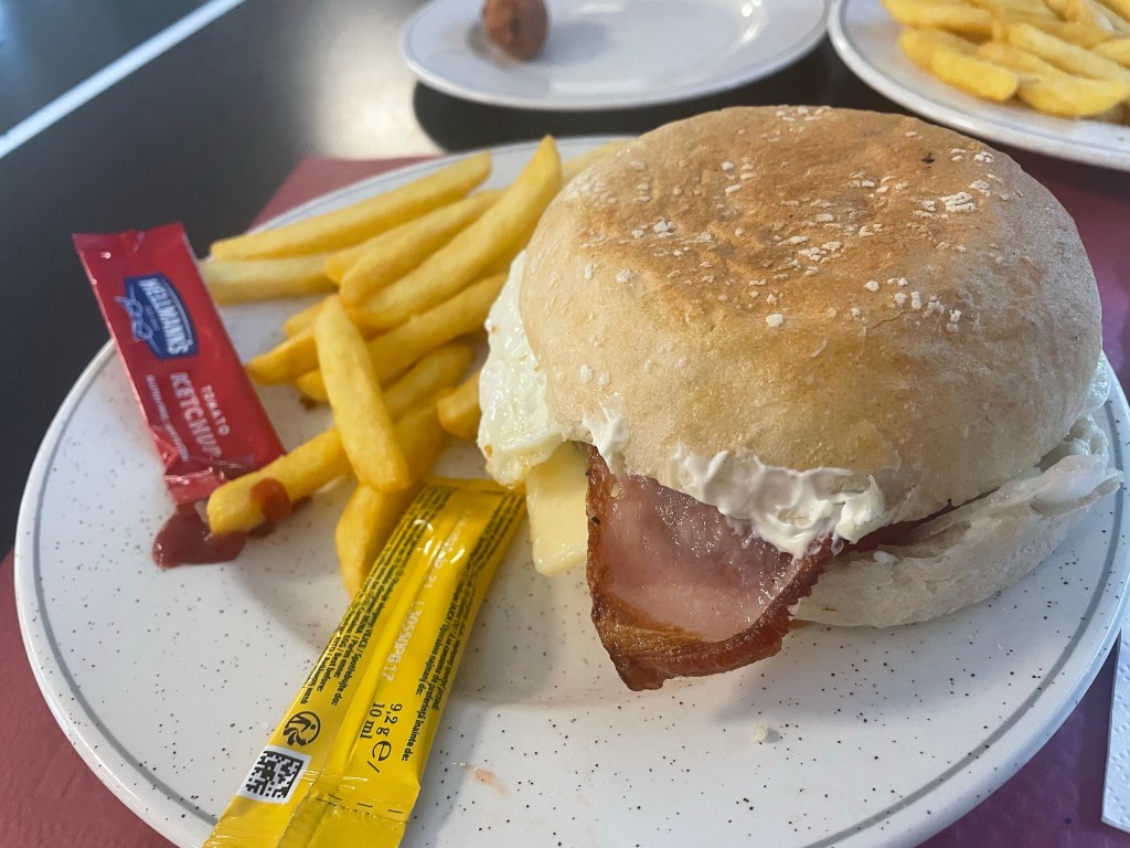 As they do not have a restaurant on premises, they sent us to a local sports complex for dinner. Interesting arrangement! We had a credit of 15 euros each. Excited at the prospect of junk food, we had ham croquettes, chicken nuggets, hamburger for me (with bacon and an egg!) and pizza for Caleb. Two cokes and two beers. We did not meet our dinner allowance but were more than satisfied so declined any further delicacies.